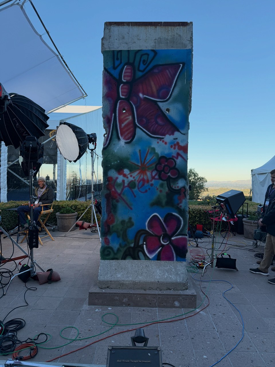 When our liaison rounded us up like the cats we were, we ran past a panel of the Berlin Wall graffitied with “freedom” and butterflies, through glass doors, around a fountain, down some stairs, and into the main hall. Behind the stage were windows that looked out onto the Santa Susana Mountains. It was absolutely a breathtaking view.