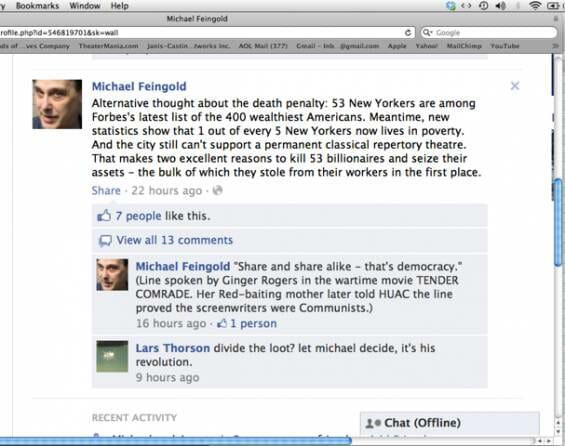 He thinks the 53 billionaires in New York City should be murdered and their assets seized to fight poverty... And to build a repertory theater. After all, they all stole it from the workers anyway.