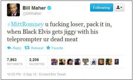 Bill Maher, Barack Obama’s million dollar donor, called Mitt Romney a “f*cking loser” yesterday.