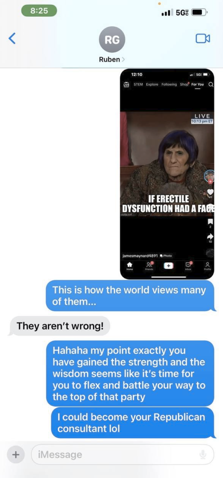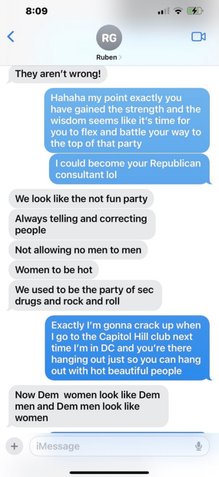 In the exchange, Gallego responds to encouragement that he could rise within his party amid ongoing political infighting. “Oh man have you met my party? I have been yelling at them this whole time,” he wrote. He would also describe the Democrats as the “not fun party,” accusing them of constantly correcting people and losing the cultural energy they used to project. “We used to be the party of sex, drugs and rock and roll,” he said.